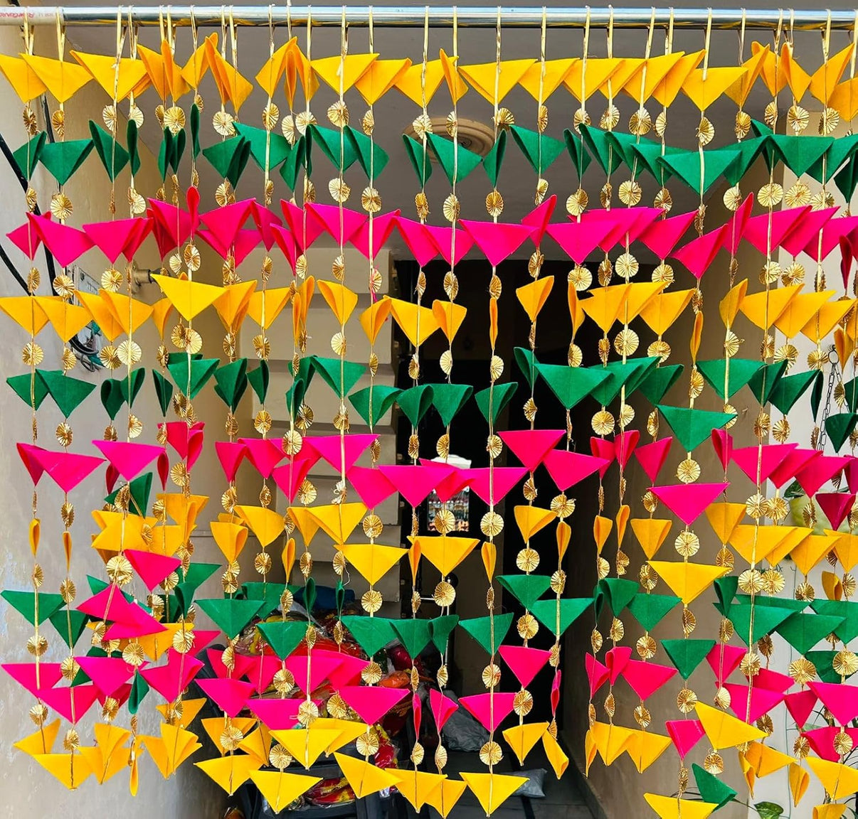 Add a dash of charm with these handmade triangle hangings! Perfect for doors, walls, mandirs, or festive setups — mix, match & drape them anywhere for a cozy, ethnic touch. ✨