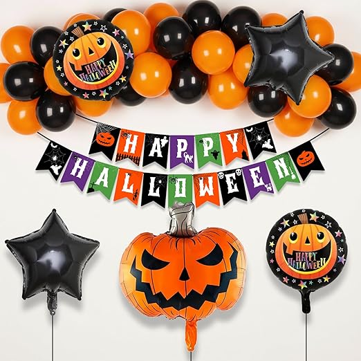 Includes spooky Halloween banners and foil balloons for extra flair