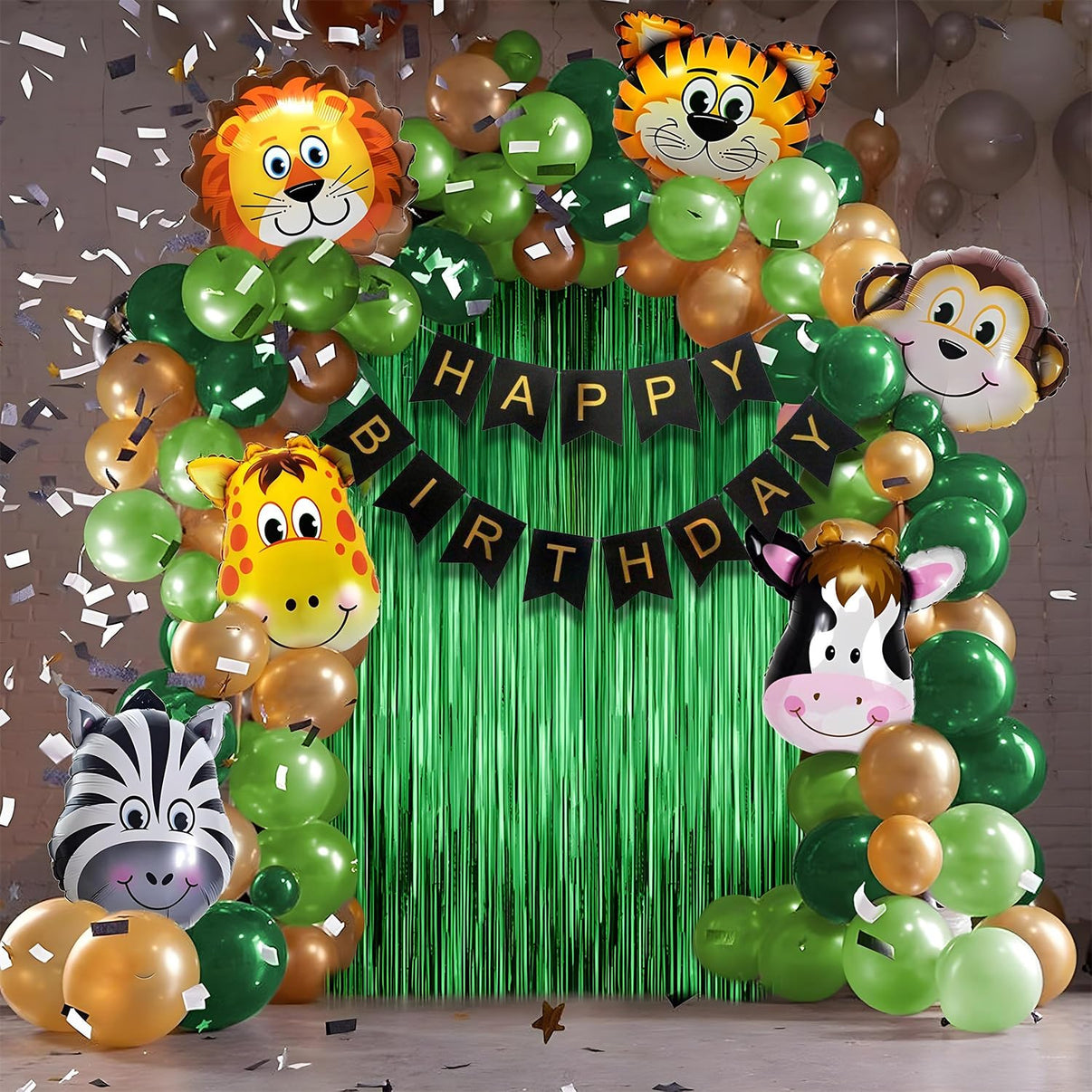 45 Latex Balloons – A wild mix of green, light green, and gold to build a vibrant jungle scene.