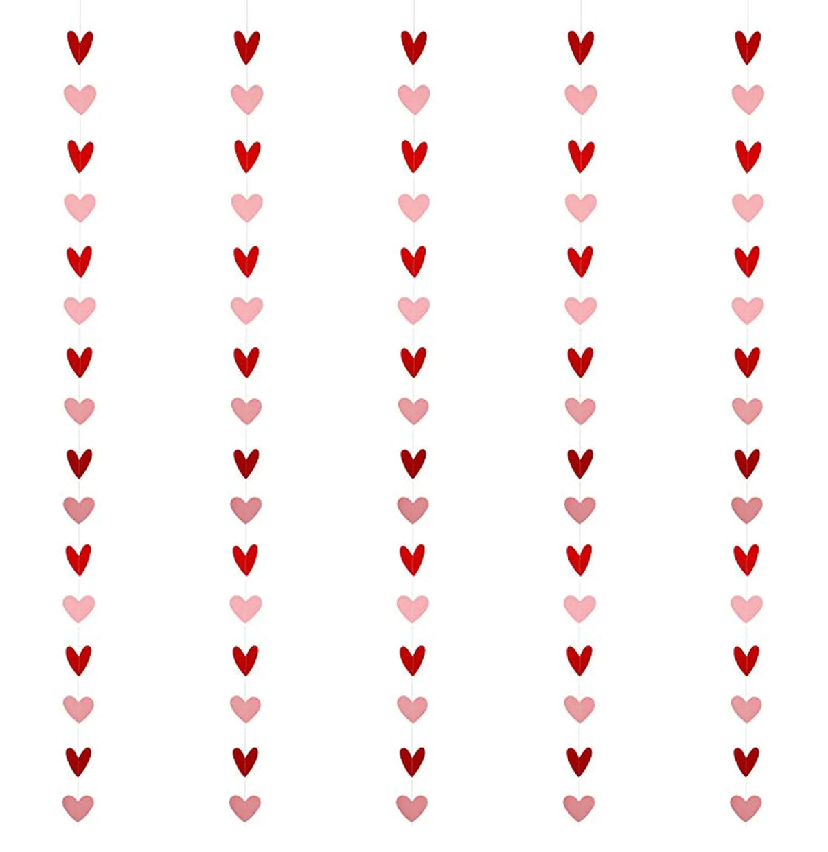 • Includes a pack of 5 red and pink heart-themed streamer garlands