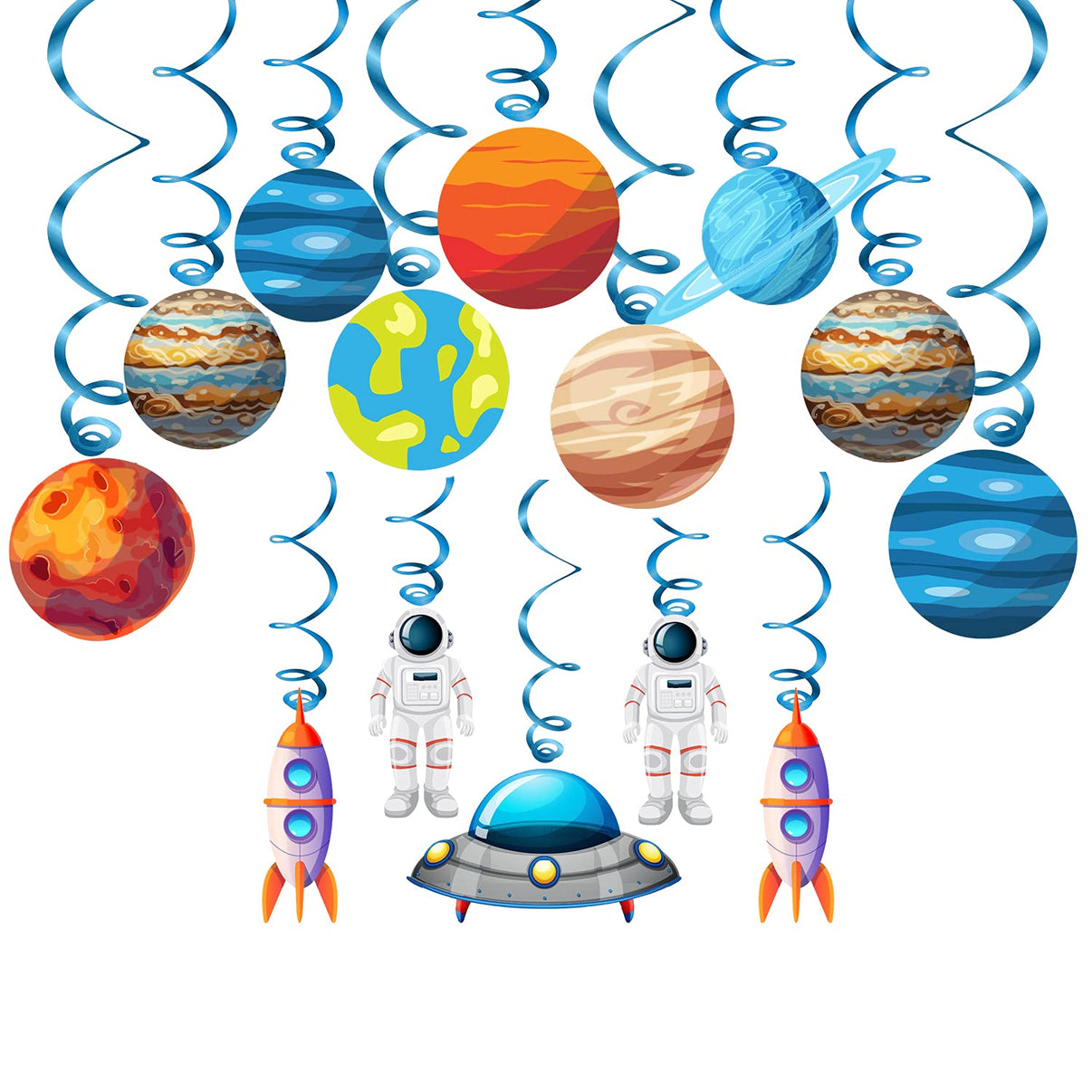 COMPLETE SPACE THEME BIRTHDAY PARTY DECORATIONS - Space theme birthday pack includes 12Pcs space theme swirls hanging decorations. Swirls are made of 300 GSM thick paper. It is a complete mutlicolour space theme hanging set for space theme birthday party for boys.