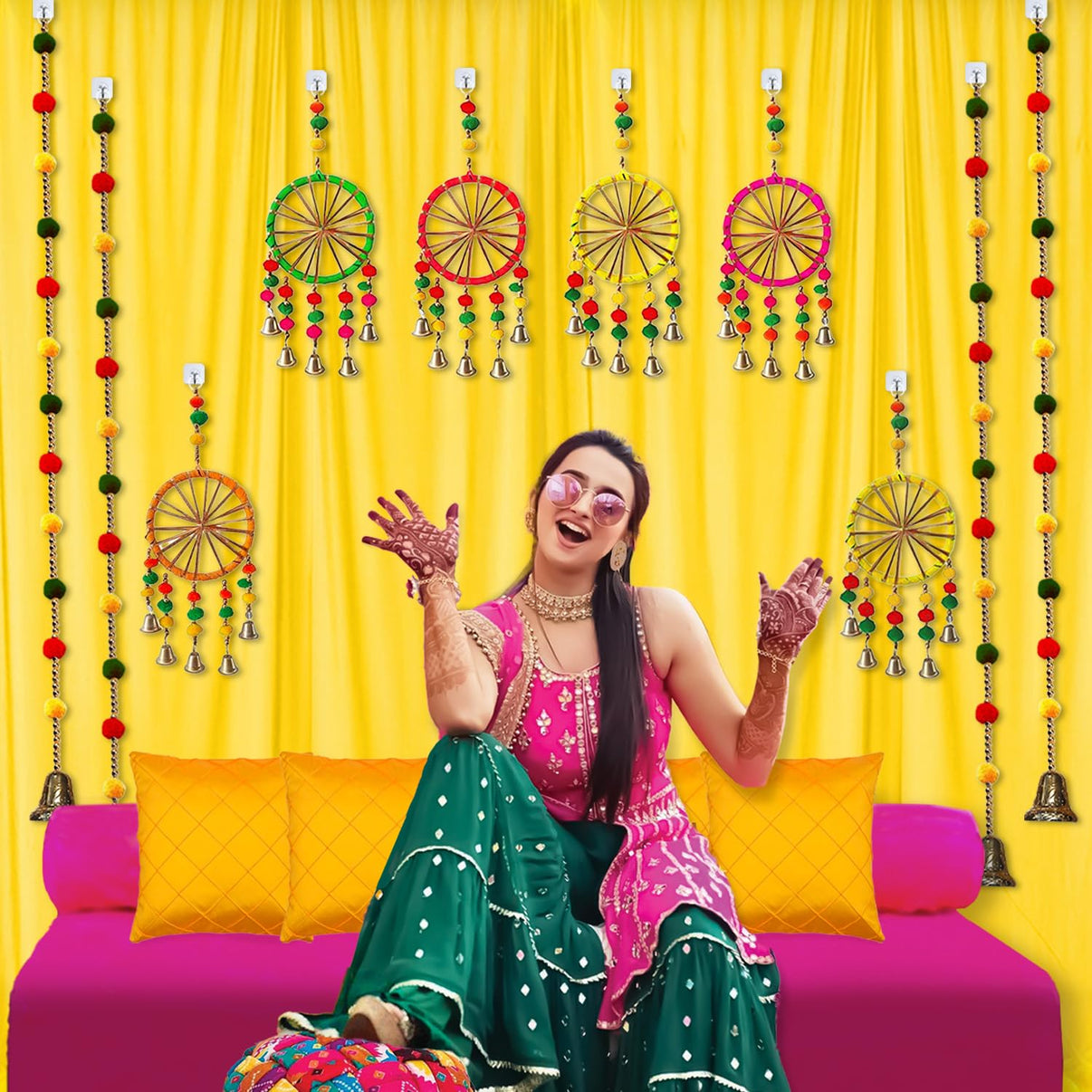 Add a handcrafted splash of Rajasthani charm to your Haldi, Mehndi, or puja space with this joyful, vibrant decor combo!